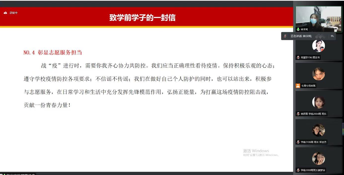 学前教育系召开学生座谈会暨疫情防控工作线上会议