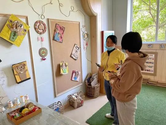 讲座结束后,幼儿园老师带领各位同学参观幼儿园,感受幼儿园优美的教学环境、丰富多彩的环境创设。给见习生们讲解了相应教学环境创设和材料的投放,体会到了不同的环境的布置蕴含着不同年龄阶段的教学目标。