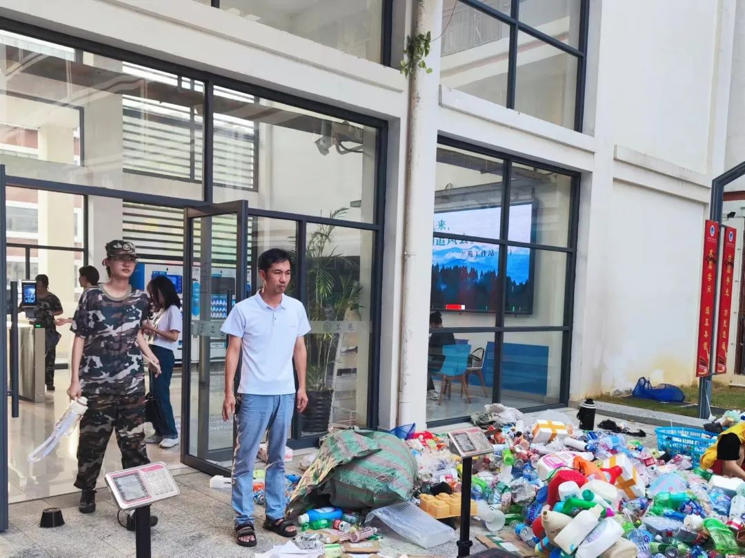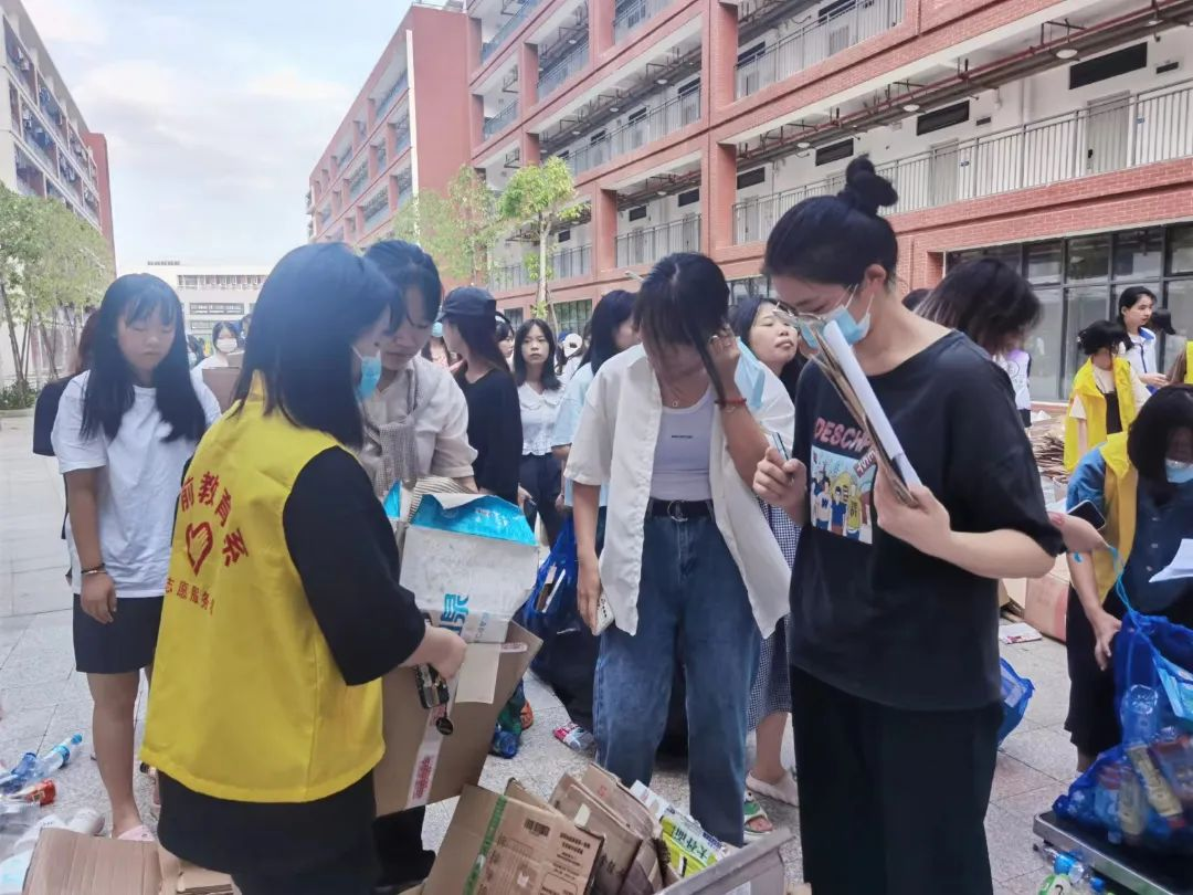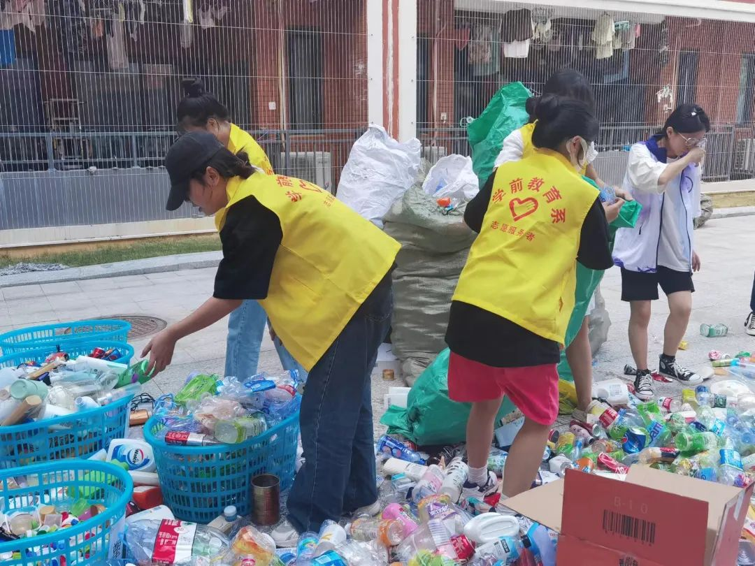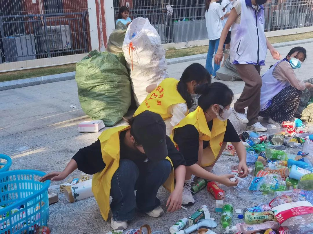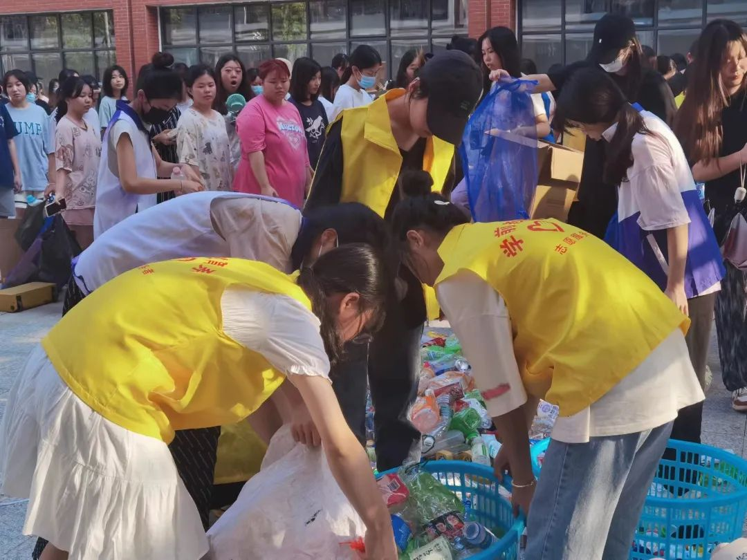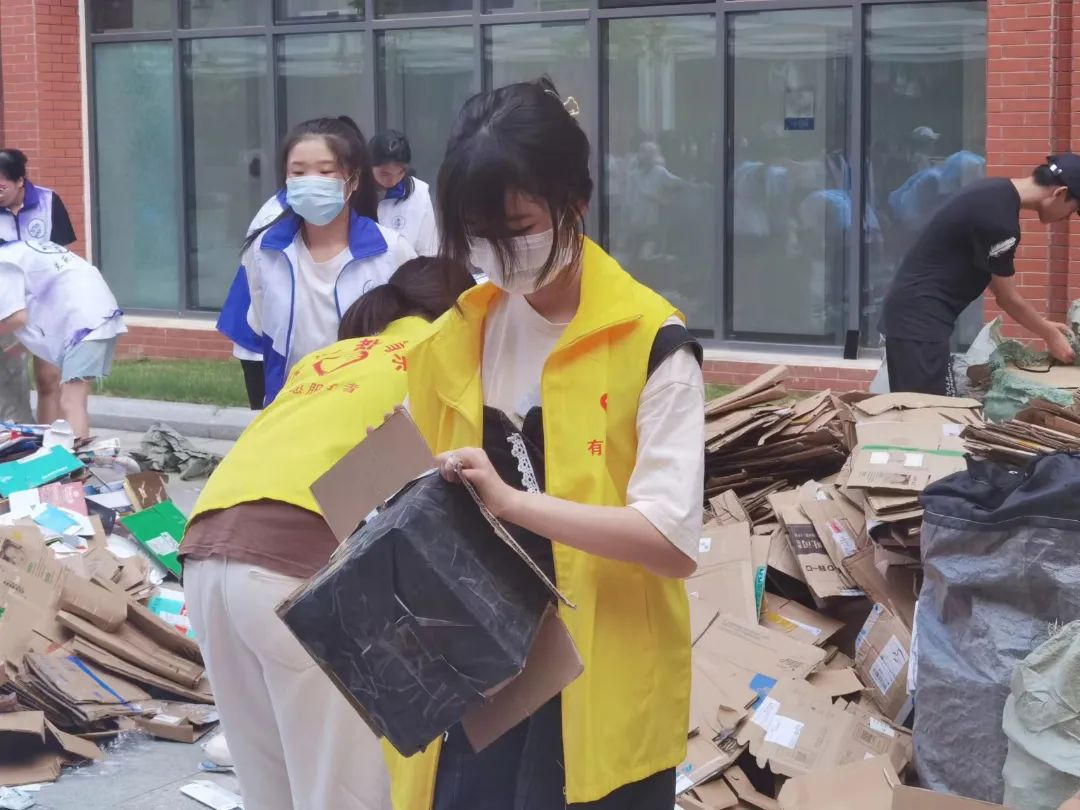 志愿者们在辅导员老师的带领下,有序开展垃圾分类活动。活动过程中,同学们有序排队,按照称重、登记、分类顺序依次参与,志愿者们认真进行装袋捆绑,并协助工作人员进行纸皮箱子及塑料瓶子装车。