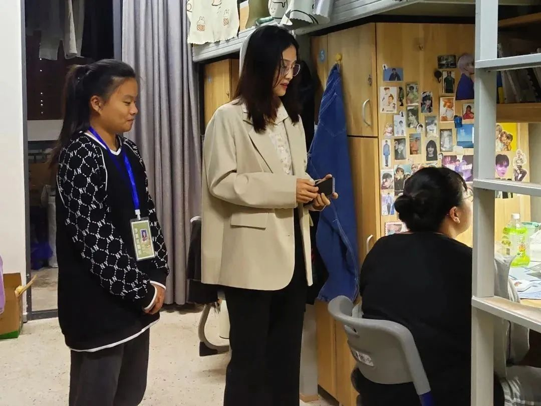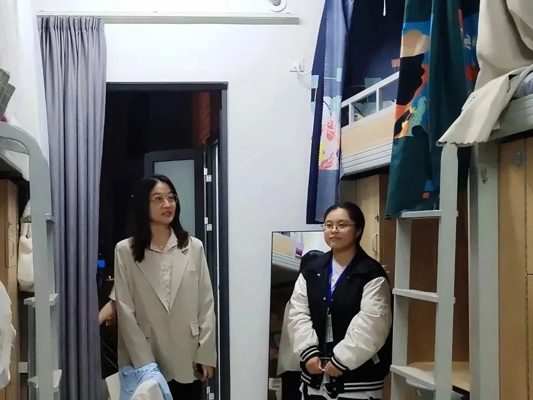为了解学生近期学习与生活情况,加强学生宿舍管理,提高学生宿舍安全,11月25日晚上,学前教育系辅导员林宇岚老师携学生干部雨夜走访兰苑5号楼女生宿舍,与同学们深入交流。