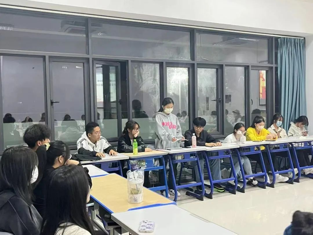第二项议程是对大一新生思想动态进行分析5判。面对大学新的环境,不少同学出现不道应焦虑、 人际困难等问题,而这些问题往往难以察觉,这对我们班级的管理提出了更高的要求。因此,翁老师要求班委们要亲近班级、亲近同学、以积极向上的心态拥抱班集体,有智慧有能力地促进人际关系和谐、构建先进文明的班集体。