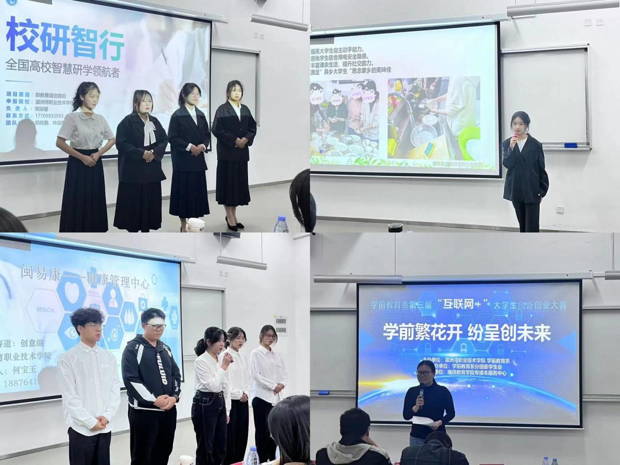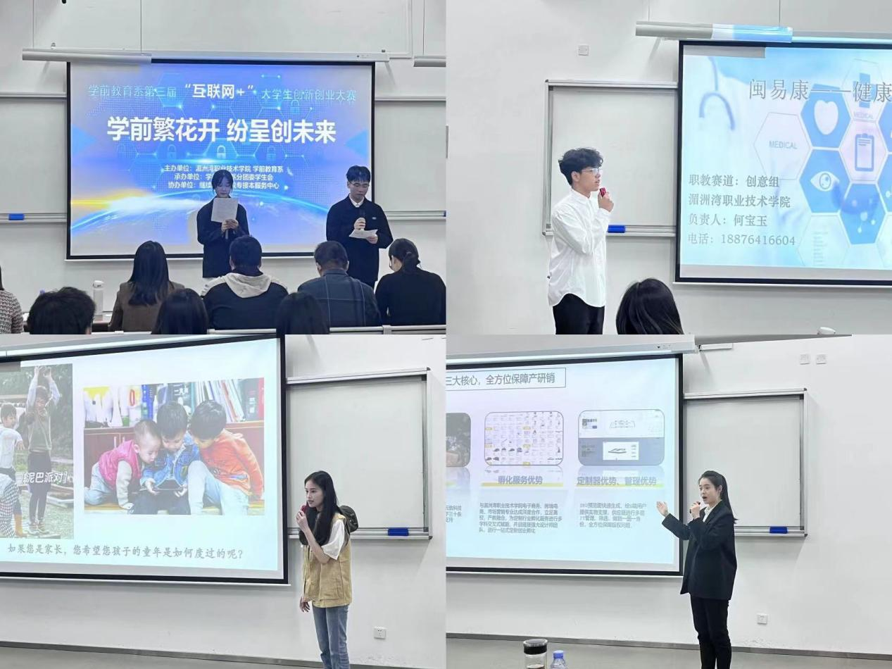 4月25日晚上,第九届中国国际互联网+大学生创新创业大赛暨学前教育系“学前繁花开 纷呈向未来”第三届互联网+大学生创新创业大赛在学院信息楼南104举行。经过初赛网评,共有6支团队脱颖而出,进行巅峰对决。