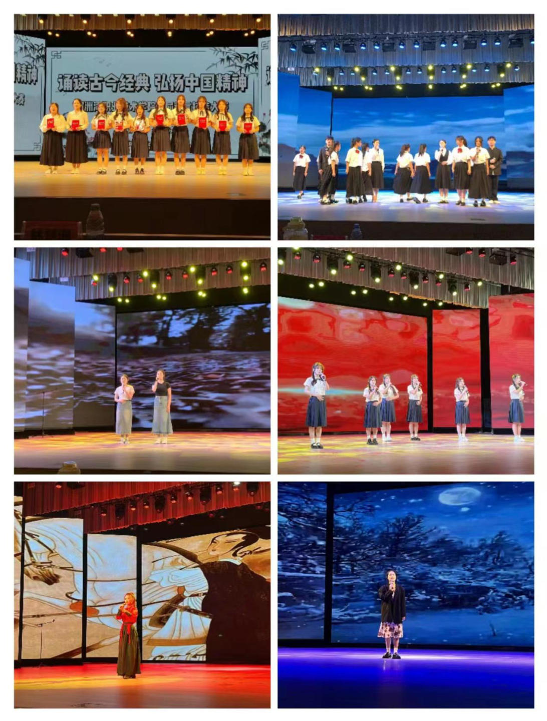 在经典诵读环节,参赛选手个个精神饱满、举止大方、激情高昂,以诵唱、表演等各种形式诠释经典诗文,学生们或吟或诵,声情并茂,或慷慨激昂,或舒缓婉转,富有情感的朗诵让大家深深陶醉。整个活动现场弥漫着浓重的国学氛围,经典的思想精髓犹如润物细无声的春雨,荡涤着师生的心灵。
