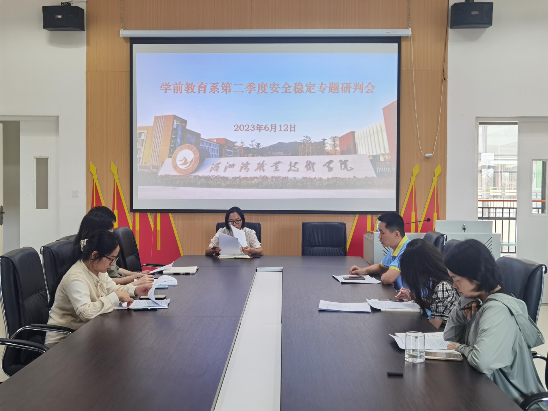 为进一步推进我系安全管理工作,结合我校期末阶段安全工作,切实把安全工作落到实处,6月12日学前教育系召开了期末安全管理工作会议。系党总支书记翁秀琴及学工办相关工作人员参加了此次会议。