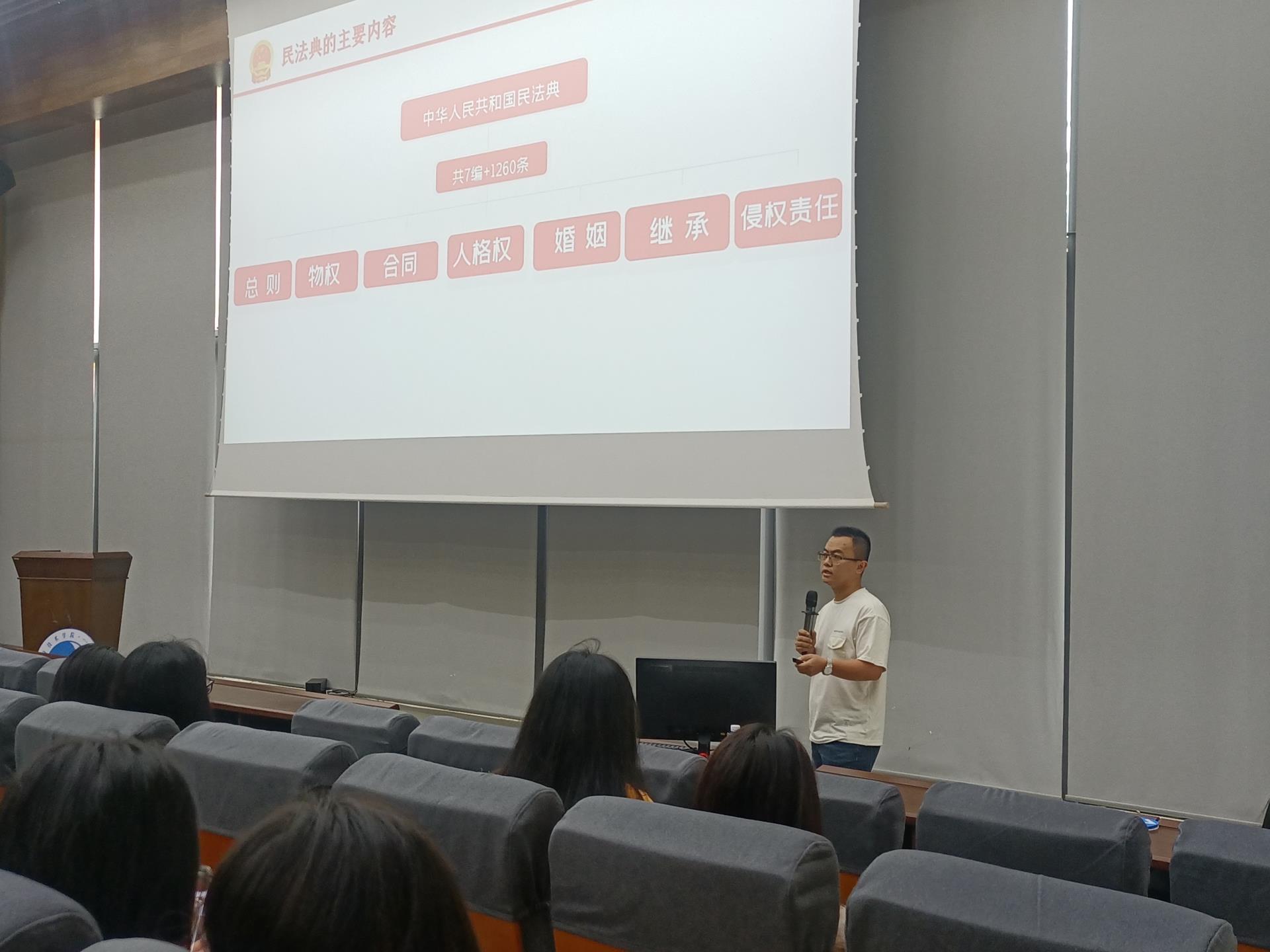 为了学生增强主动维护自身合法权益的意识,在未来更好地与社会接轨,减少被侵权事件的发生,更好落实学生就业,学前教育系组织2020级毕业生学习《民法典》,熟悉这部涉及社会和经济生活方方面面的“百科全书”。2023年6月15日上午九点,学前教育系在330学术报告厅开展了“护航青春,与法同行”专题讲座。讲座由吴东东老师主讲,2020级学前教育系的学生参加讲座。