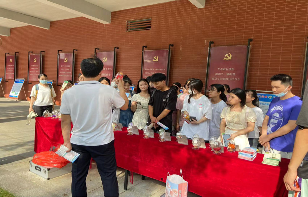 活动中,学院安保处彭飞平老师详细地为同学们讲解了“安全生产月”相关内容,现场展览内容充实,包括安全生产十查十禁、消防安全、毒品安全等内容,图文并茂,生动形象。在讲解毒品教育模块时,飞平老师通过毒品模型展示、互动抢答等方式让同学们深入了解生活中常见的毒品类型,增强了同学们的防毒识毒拒毒能力。