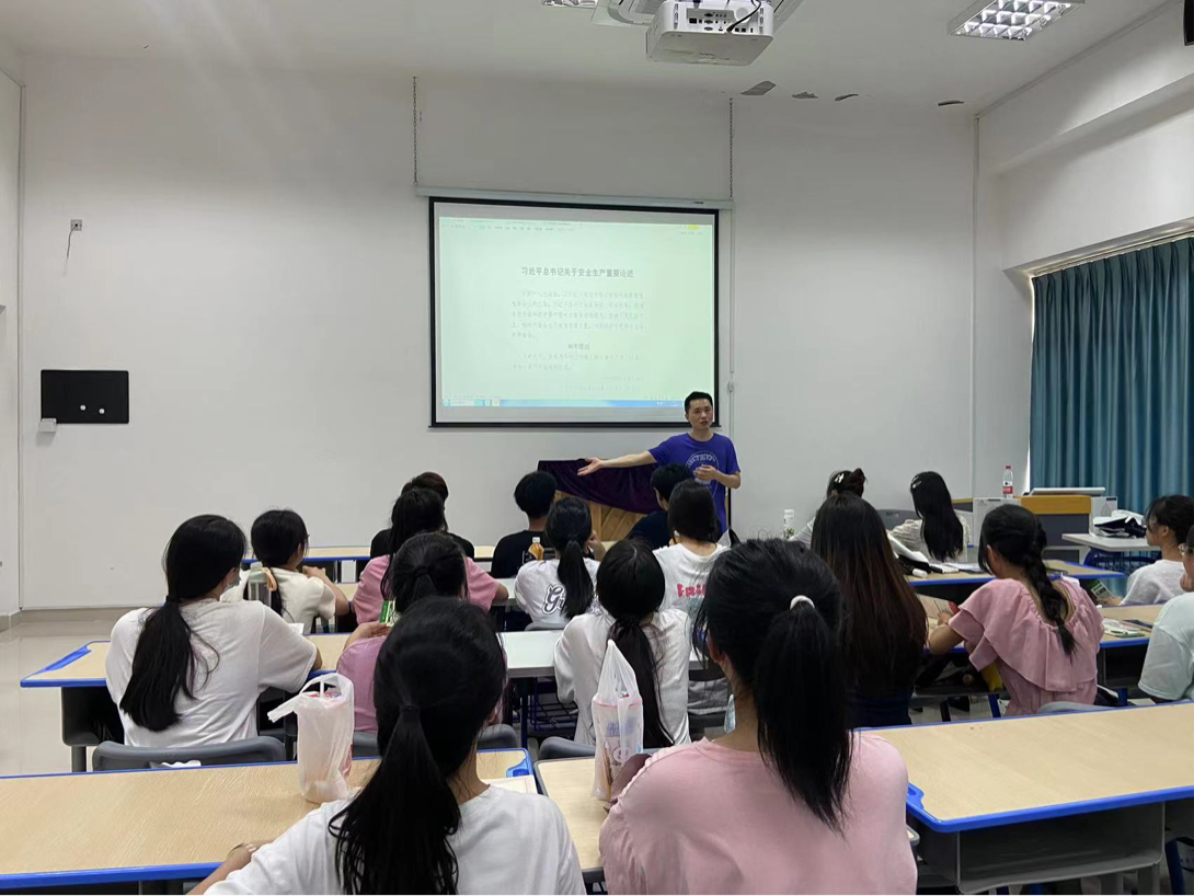 随后,我系组织召开暑期安全专题会议,认真学习《习近平总书记关于安全生产重要论述》《安全生产法》。会上,翁少俊老师就暑假安全注意事项进行强调说明,提醒同学们注意财产安全、交通安全、防溺水等注意事项,其中着重强调了暑期防溺水问题。同时,他还提醒同学们假期要合理规划、科学安排学习时间,保持健康生活习惯,增强体育锻炼,以健康体魄和精神状态度过暑假。
