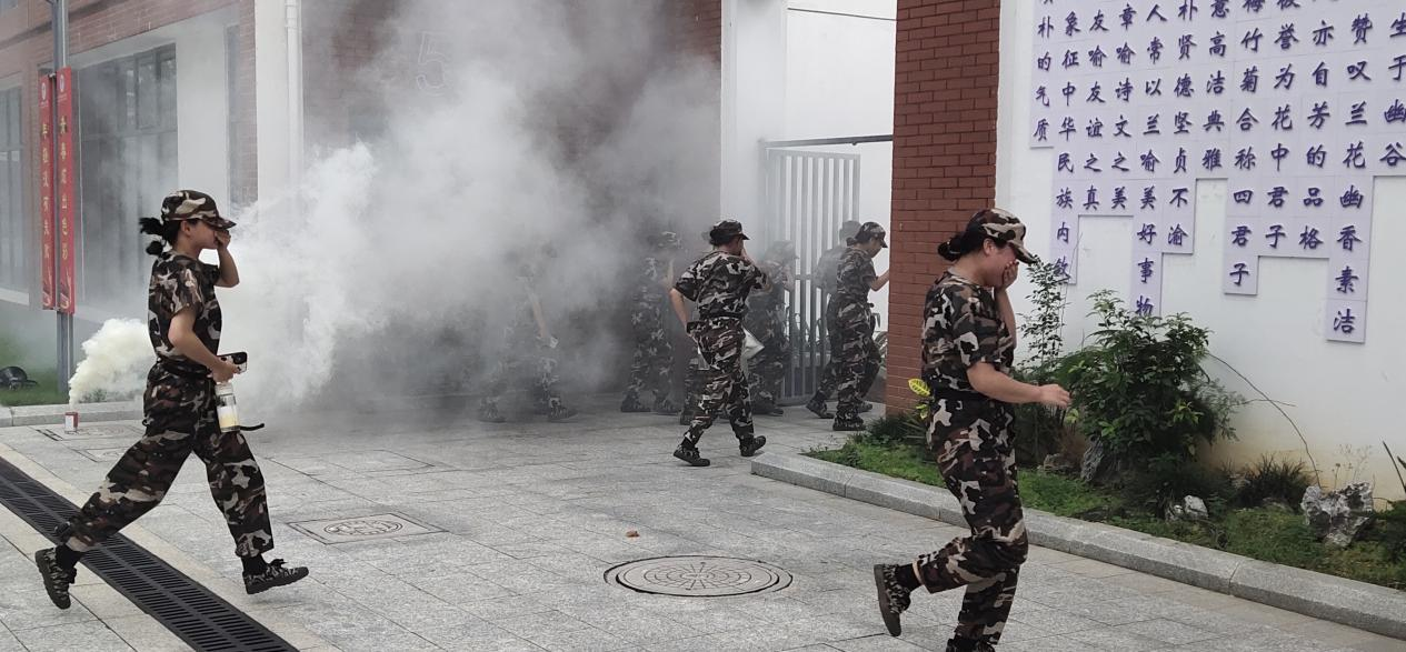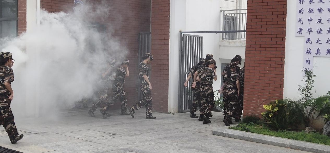 下午2点40分,伴随着警报声的响起,烟雾弹喷出一股股浓烟,消防安全演练正式开始。学生们在辅导员的组织下,纷纷拿袖子或用手捂住口鼻,按照指定路线有序地进行疏散,快速安全到达操场后,各班负责人清点人数,并向教官报告。整个过程井然有序,充分体现出良好的消防安全素质。