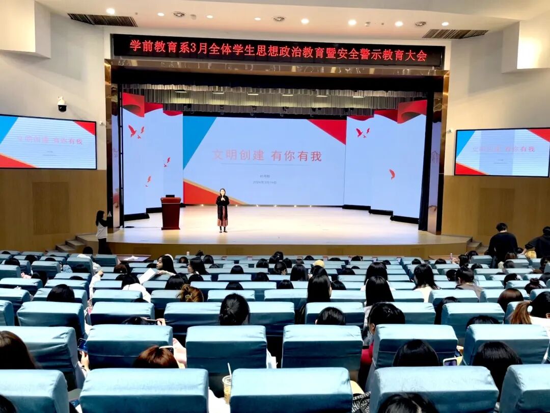 为进一步加强学生思想政治教育,强化学生文明养成、安全意识,营造文明和谐校园氛围,3月19日下午,我系在立言大礼堂召开3月全体学生思想政治教育暨安全警示教育大会,全系辅导员和全体22级、23级学生参会。