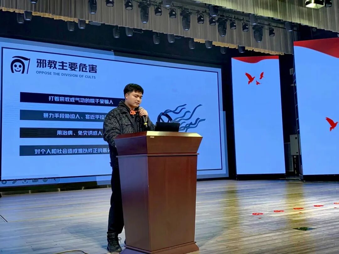 紧接着许超楠老师结合视频向同学们展示了邪教组织对个人和社会造成的恶劣影响,让同学们对邪教的本质有了更清晰的认识,并倡导和呼吁同学们时刻保持警惕,积极参与反邪教宣传活动,坚决反对邪教组织。