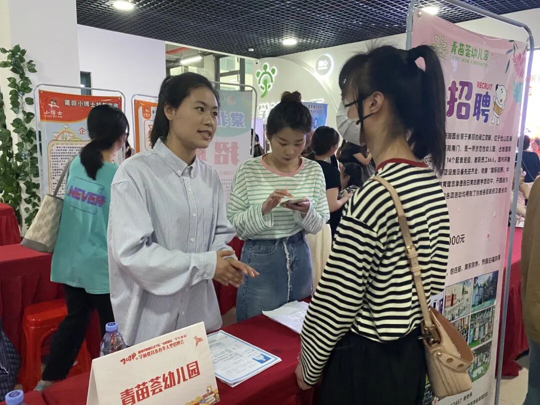 宣讲会结束后,不少学生前往系部专场招聘会青苗荟幼儿园招聘展位现场,主动与企业人事负责人进行面对面的交流,并进行求职信息登记。