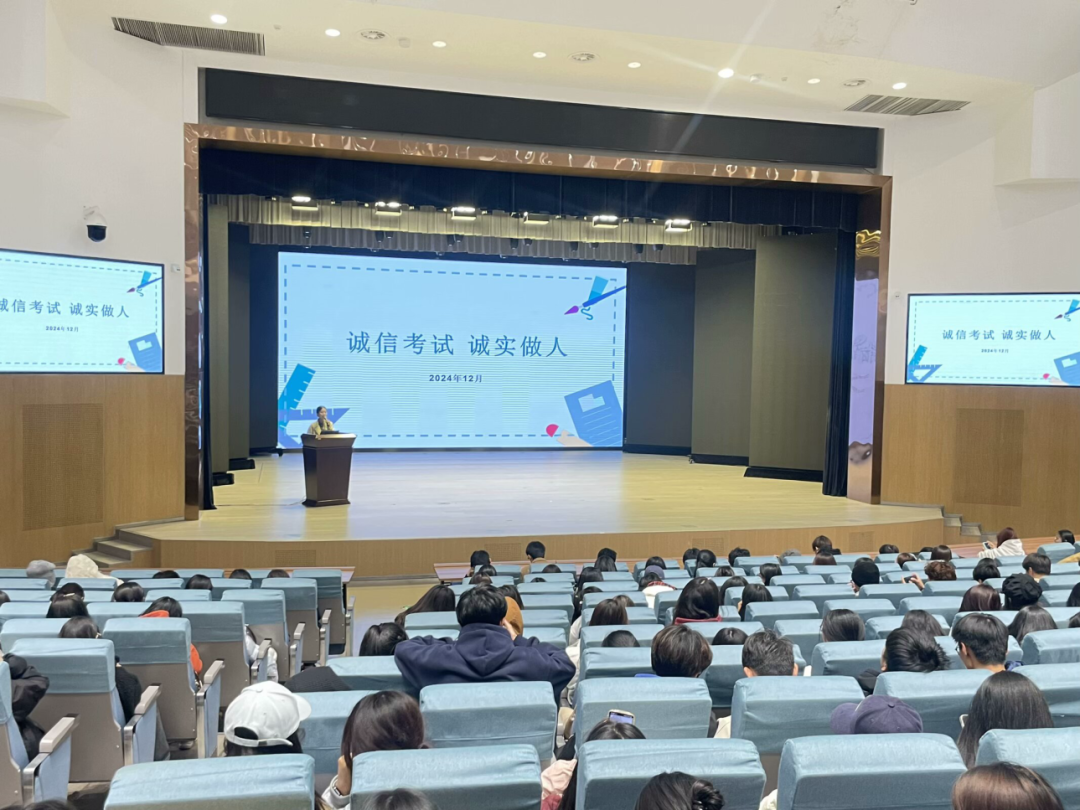 接着,雷乙老师强调了诚信考试对于学生个人成长的重要性。她指出,期末考试不仅是对知识掌握程度的检验,更是对个人品德和诚信的考验,希望同学们能够树立正确的考试观念,严守考试纪律,将诚信内化于心,外化于行。同时她通过对真实作弊案例的分析,旨在提醒同学们考试作弊的严重危害和后果,起到了很好的警示作用。雷老师提醒同学们要以积极的心态努力备考,制定合理的学习计划,互帮互助,共同进步,形成积极向上、严谨求实的优良学风。