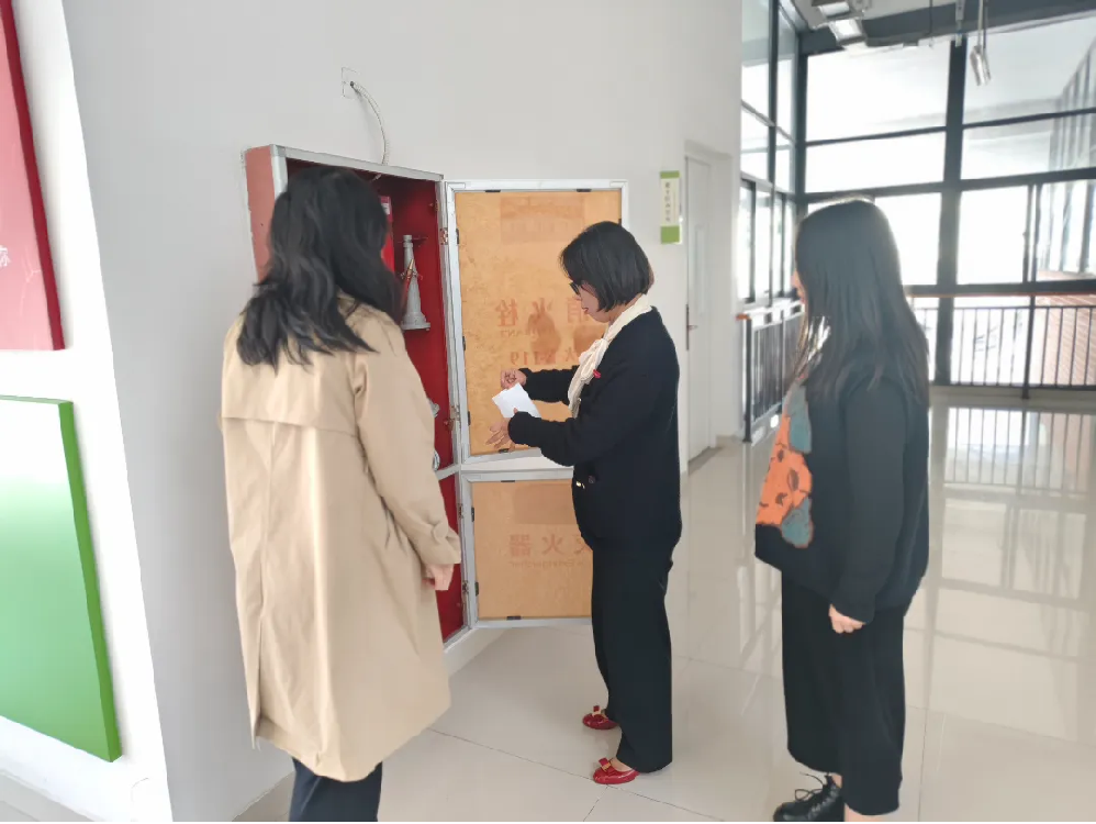 翁书记一行实地考察了系部教学楼、实训室等多个区域,对消防设施的完好性进行了逐一核实。她们认真查看灭火器压力值,确保处于正常状态,同时检验消防水带是否完好无损,确保在紧急情况下可以立即投入使用。特别是对疏散通道和安全出口进行重点排查,确保这些“生命通道”畅通无阻。