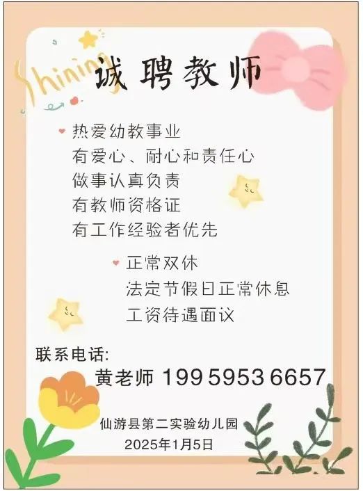 就业招聘||仙游县第二实验幼儿园招聘启事