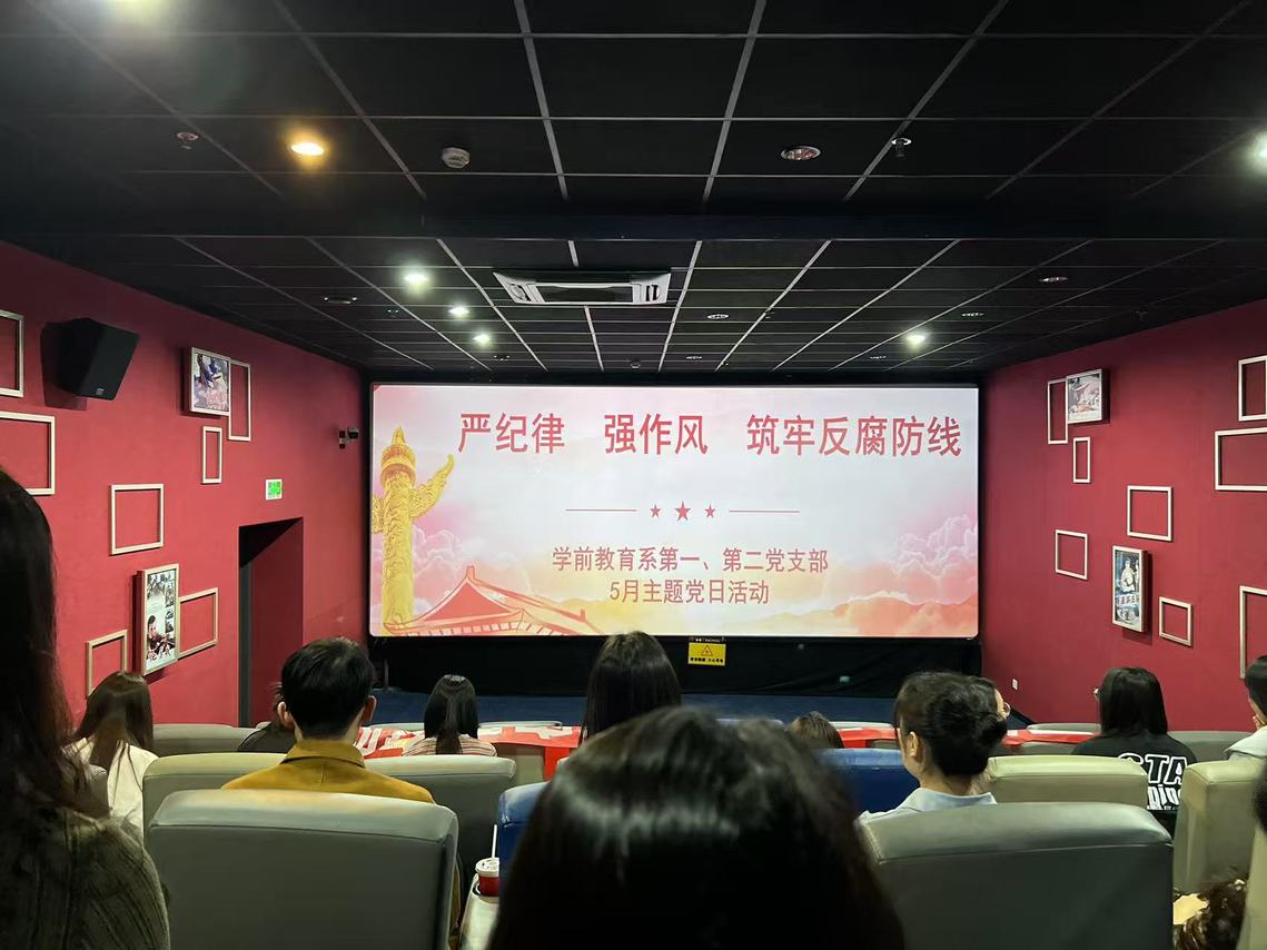 为深入贯彻落实中央八项规定精神,持续深化党风廉政建设,4月28日,学前教育系党总支组织开展5月份以案为鉴 筑牢防线主题党日活动,以观看反腐题材电影《猎狐行动》开启典型案例学习,全系党员教师参加活动。
