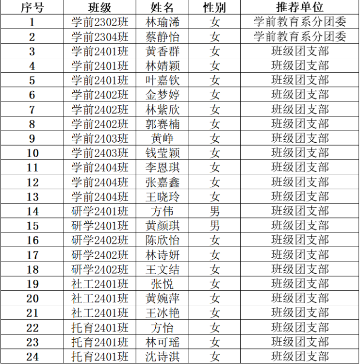 学前教育系 2025 年第一期“推优”人 员名单公示