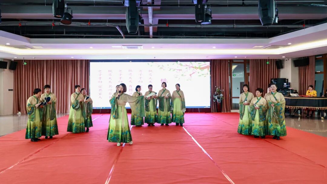 此次活动,最动人之处在于老少同堂,银发与黑发交织成一幅和谐传承的画面。这一刻,没有年龄的界限,只有共同的声音,对党和国家深深的感恩之情。会上,《读中国》《非凡75年》《诗意中国》等经典之作相继登场,每一首诗歌都饱含深情,或慷慨激昂,或温婉柔情,歌颂着祖国的大好河山,赞美着党的光辉业绩。特别是我院精心策划的原创作品《脊梁》震撼全场,讲述从烽火硝烟到和平盛世,无数英烈和楷模挺起不屈之躯,成为国家和民族的脊梁,激励着青年一代的使命感与担当精神。除了诗歌吟诵,活动中还融入了古筝表演、旗袍秀等中国传统文化表演,展现了中国传统文化的魅力。