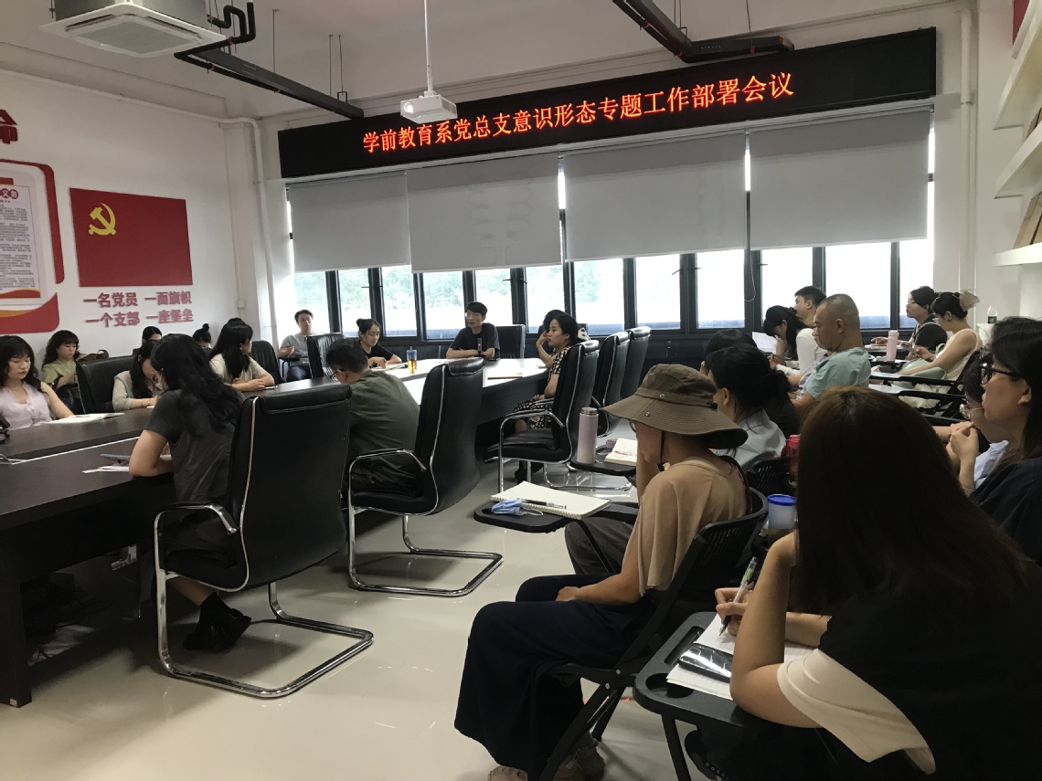 为深入学习贯彻习近平总书记关于意识形态工作的重要论述,10月14日下午,学前教育系党总支召开意识形态专题工作部署会议,系党总支书记李超、副书记翁秀琴,副主任任琳琳以及全体教师参加会议。