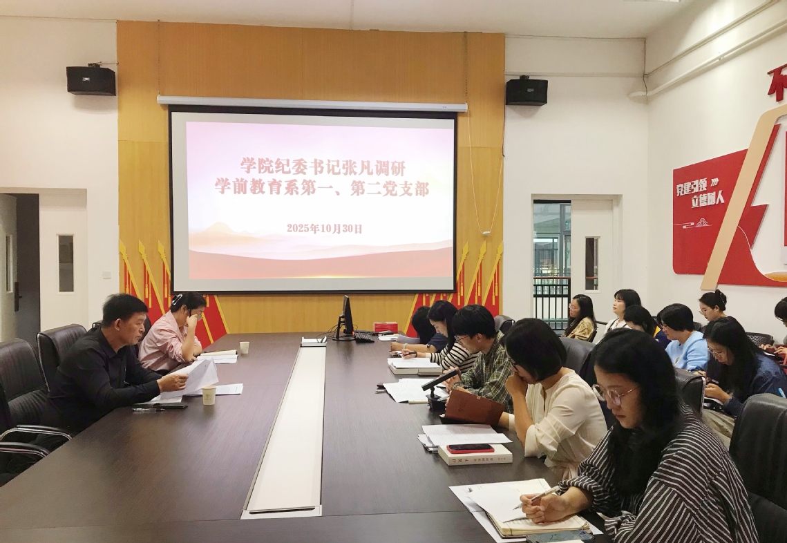 10月30日,学院纪委书记张凡深入学前教育系第一、第二党支部开展调研,全面了解基层党建工作进展,聚焦问题短板,为推动系部高质量发展把脉定向。学前教育系第一、第二党支部全体党员教师参加调研座谈。