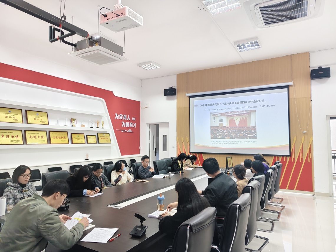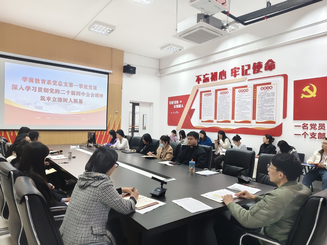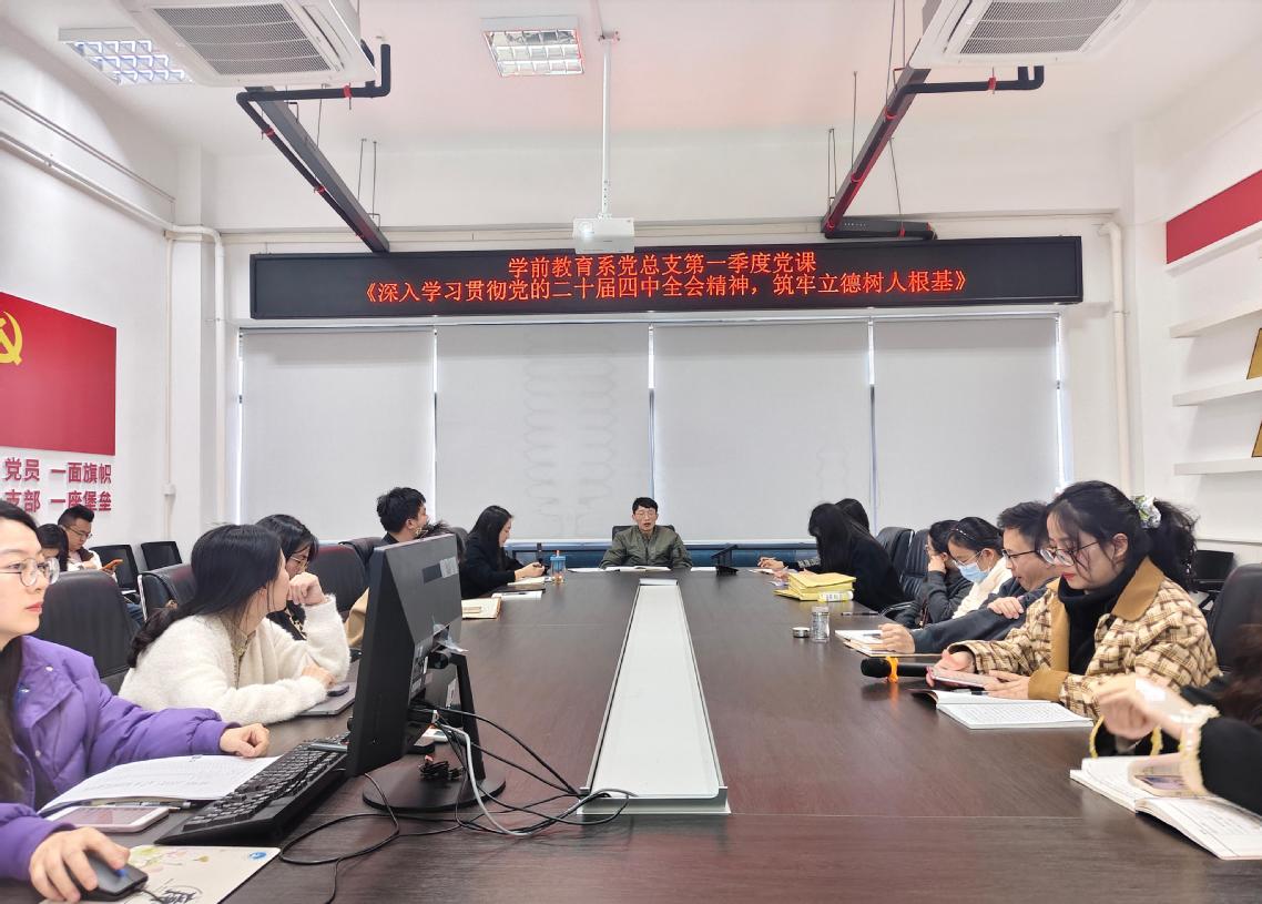 为深入学习贯彻党的二十届四中全会精神,引导党员教师筑牢思想防线,1月19日,学前教育系党总支书记李超以《深入学习贯彻党的二十届四中全会精神,筑牢立德树人根基》为题讲授党课,全体党员教师参会学习。